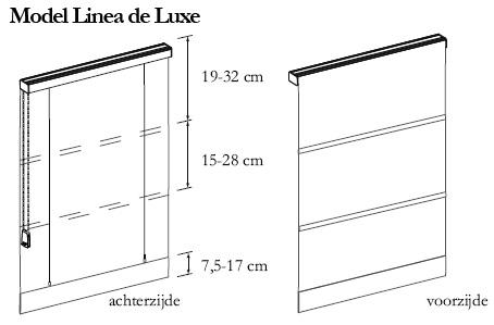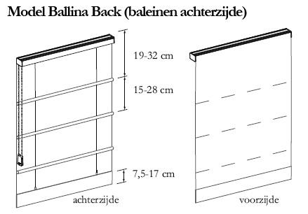 De tunnels vinden zich aan de achterzijde van de Luxaflex Roman Shade en is uitgevoerd met ronde baleinen voor extra stevigheid. De tunnel wordt door middel van een uniek magneetsysteem op spanning gezet, wat leidt tot een mooi en strak aanzien. De Ballina Back is vooral geschikt voor uni stoffen. - standaard geleverd met dubbele volant en 55 mm zijzoom. Optioneel: (neem hiervoor contact met ons op) - met enkele volant welke standaard een 30 mm zij- en onderzoom heeft - met 30 mm zij- en onderzoom - met 55 mm onderzoom Met voering: Linea de Luxe balein achterzijde
